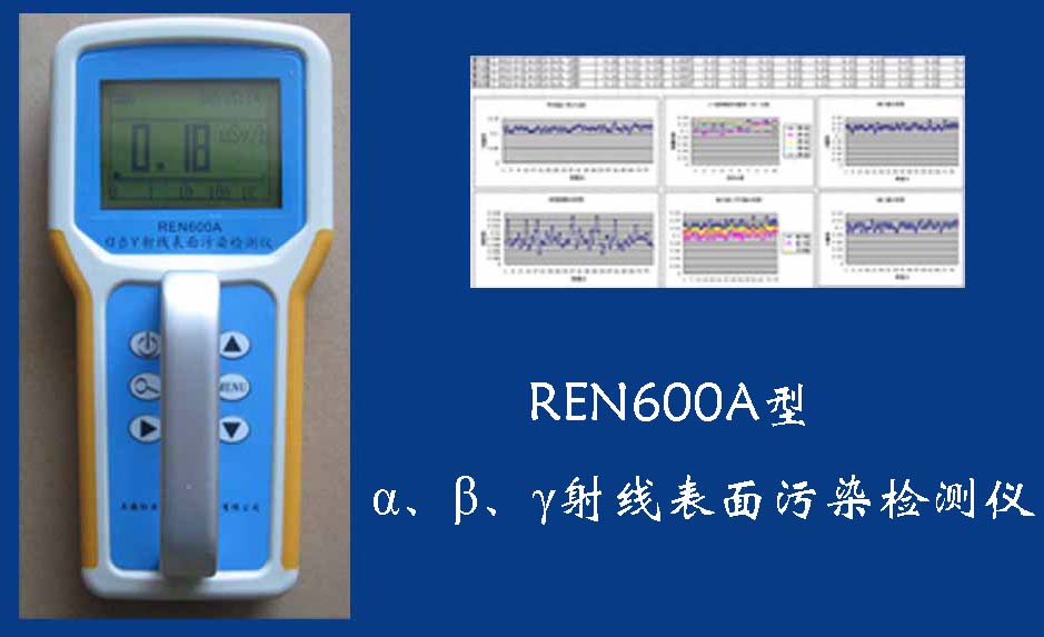 REN600A型α、β、γ射線表面污染檢測儀即可檢測α、β、γ射線,也能檢測到X射線,它采用高速嵌入式微處器作為數(shù)據(jù)處理單元,點陣式大屏幕LCD液晶顯示,讀數(shù)清晰、操作方便,具有400條超大容量數(shù)據(jù)存儲。儀器采用進口的大面積MICA蓋革探測器,具有較高探測效率,可進行α、β輻射表面污染檢測和X、γ輻射劑量率的監(jiān)測。此外通過配套的RenriCont表面污染管理軟件可將存儲的數(shù)據(jù)讀出后分析。可廣泛用在制藥廠、實驗室、發(fā)電廠、進出口商檢、采石場、環(huán)境實驗室、環(huán)境污染調(diào)查、核安全應急、緊急狀況營救站、金屬處理廠、地下油田、供油管道裝備、醫(yī)院核醫(yī)學科、同位素實驗室、環(huán)境保護和警察局等部門。REN600A型α、β、γ射線表面